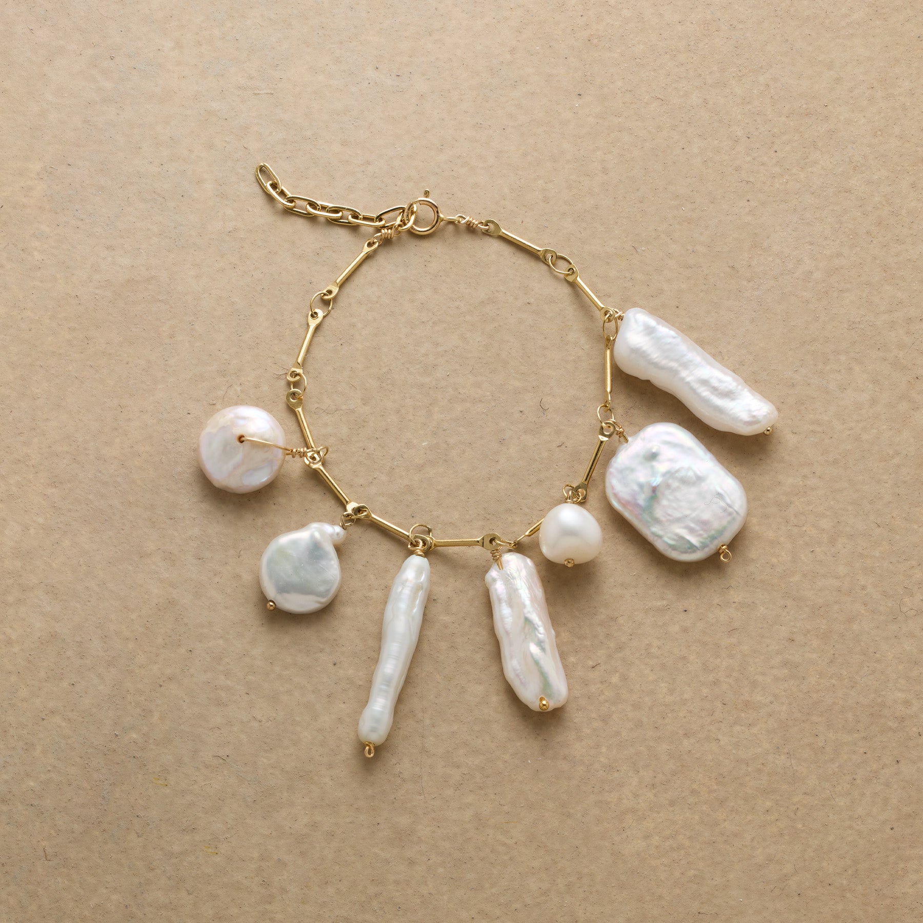 This effortlessly cool bracelet proves that a few fun pearls can add a whole lot of je ne sais quoi. Bar chain and spring-ring clasp are 14kt gold-plated stainless steel. Handcrafted in USA. 6?C7l.