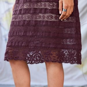 Chantilly lace and embroidered eyelet cascade on a graceful dress with feminine details. Contrasting slip with adjustable straps. Keyhole back button closure. Cotton. Hand wash. Imported. Exclusive. Sizes 2 to 16. Approx. 38L.